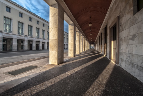 Tag: ombre, prospettiva, portici, colonne, portico, lampioni, ombra, nuvole, finestre, marmi.