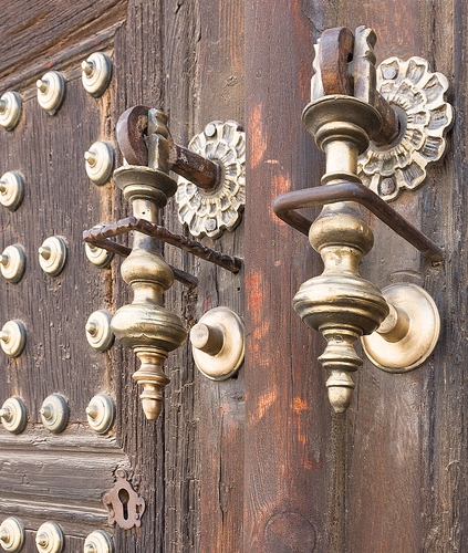 Tag: legno, portone, batacchio, ottone, due, porta, borchie, battiporta, batacchi, metallo, maniglie, serratura, ferro.