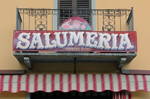 Tag: balcone, tenda, insegna, rosso, salumeria, ringhiera, finestra, porta, righe.