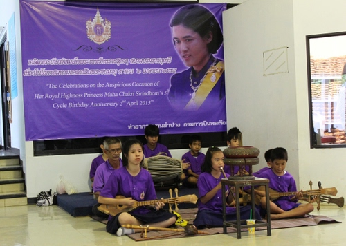 Orchestrina di ragazzi nell'aeroporto di Lampang (Thailandia). Alle loro spalle in ritratto della Principessa, il cui colore è il viola. In Thailandia ogni giorno della settimana è associato ad un colore. Il colore del venerdì è il viola, e la Principessa, figlia dell'Imperatore e molto amata dal popolo per le sue attività caritative, è nata appunto di venerdì. Questi ragazzi suonano per raccogliere fondi per la loro organizzazione benefica, sostenuta anche dalla Principessa.