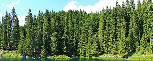 Bosco in riva al Lago di Carezza