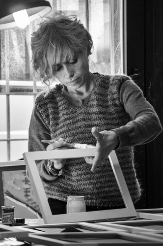 Tag: cornice, donna, pennello, bianconero, mani, legno, luce, artigiano.