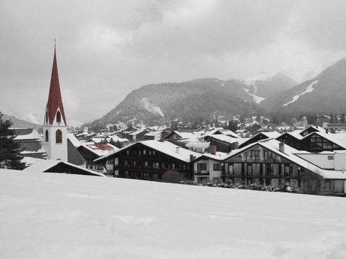 neve e cielo grigio rimane solo a svettare il campanile rosso alpi austriache